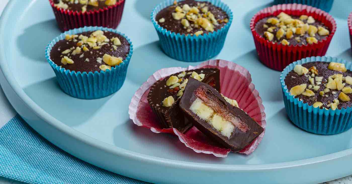 - Fill cupcake liners with half the chocolate mixture; top with strawberries, banana, remaining chocolate mixture and peanuts. Makes 12 cups.