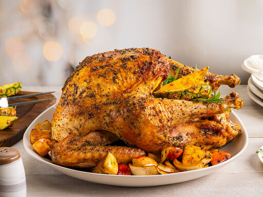 - 1 fresh or frozen turkey, thawed if necessary (about 12 to 14 pounds)