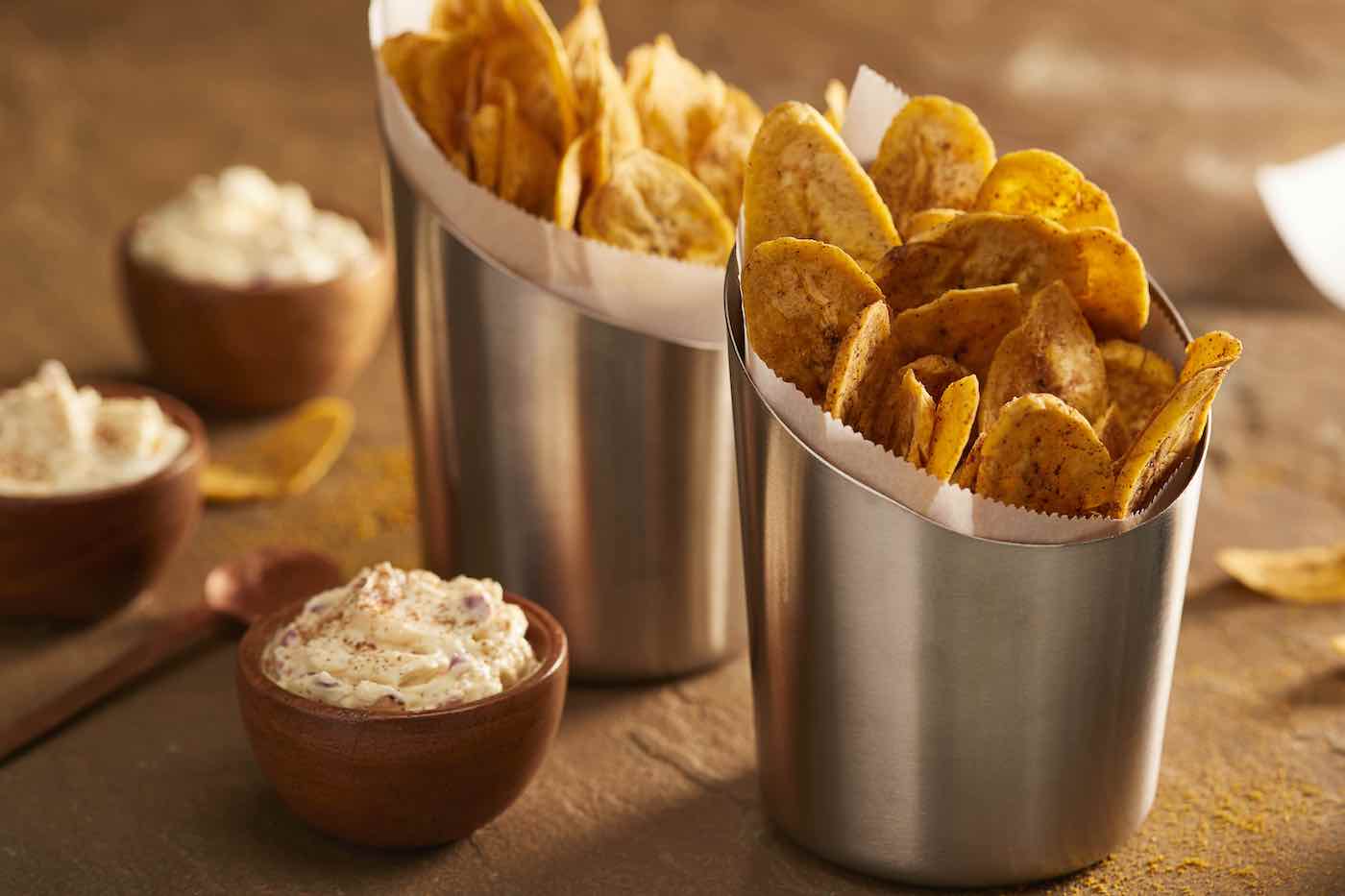 - Serve plantain chips with dip.