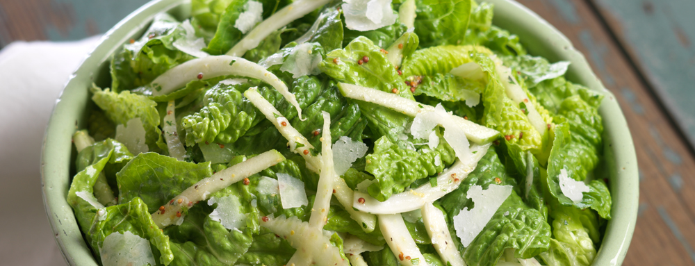 - Combine romaine, fennel, apple and cheese in large bowl.
