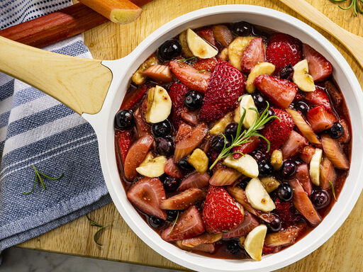 - Stir in strawberries and blueberries, return mixture to simmer and continue cooking for 2 minutes.