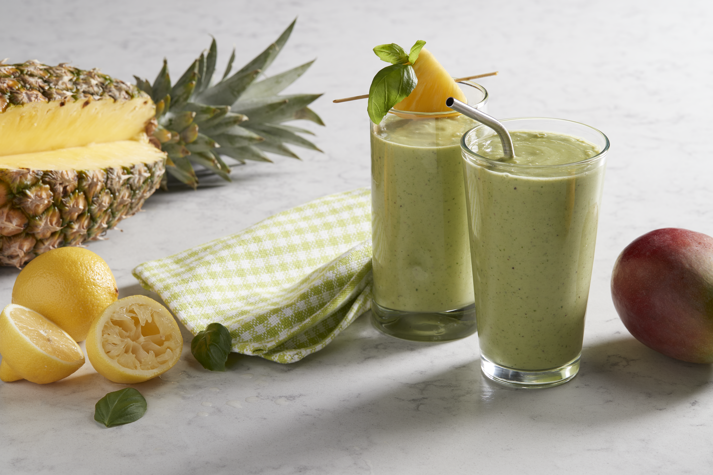 - Combine spring mix, avocado, yogurt, milk, mango, pineapple, basil and lemon juice in blender or food processor. Cover; blend until smooth.
