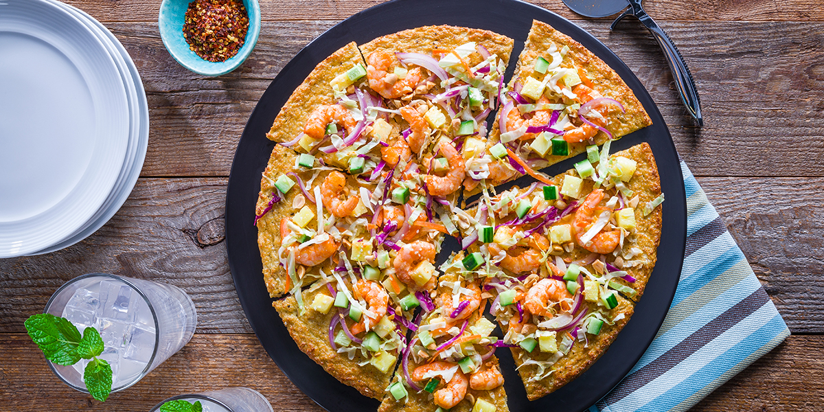 Thai Spicy Shrimp Pizza with Cauliflower Crust